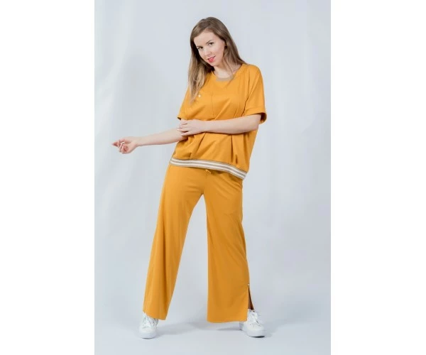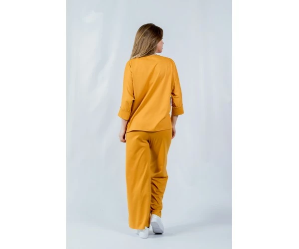 Свободные брюки теплого оттенка горчицы занимают основное место в спортивном и повседневном гардеробе и идеально подходят к любым типам фигуры.