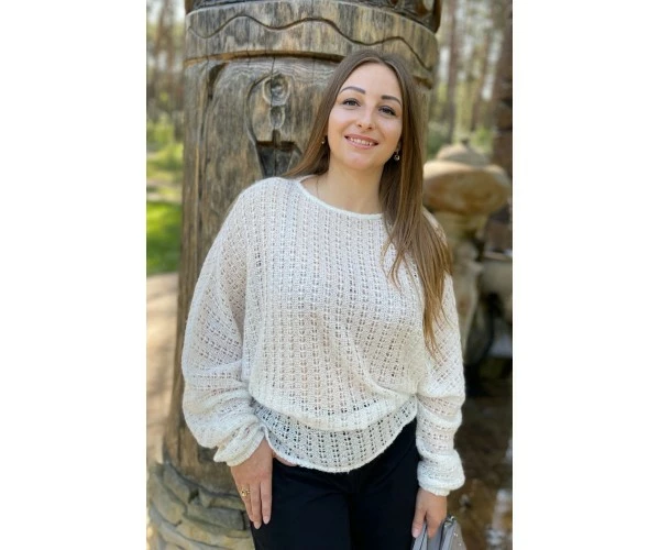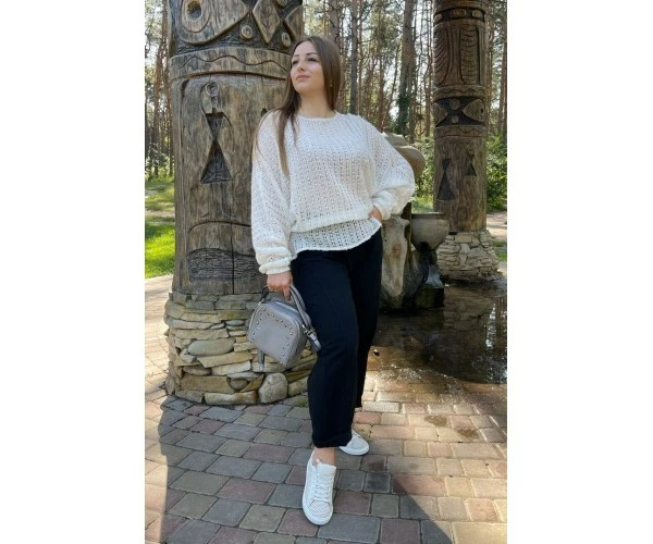 Джемпер имеет оригинальный фасон – летучая мышь, выполненный из полушерстяной нити и за счет этого, будет очень теплым и комфортным. Подойдет к брюкам, юбке и джинсам.