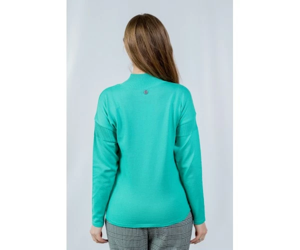 Однотонный джемпер с воротником-стойкой бордового цвета добавит
