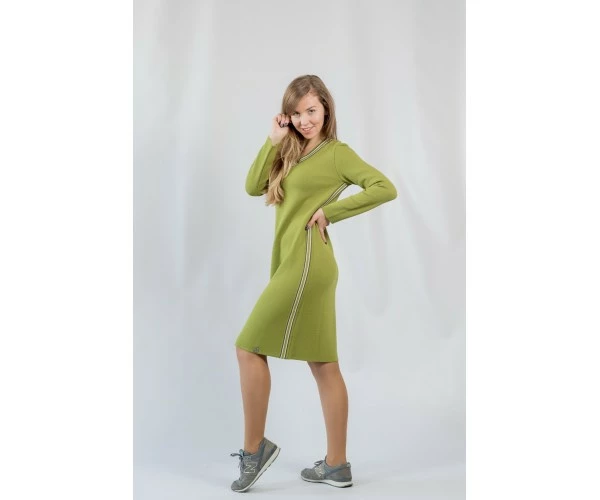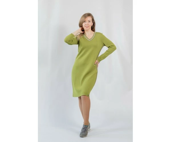 Стильное платье свободного покроя с боковыми лампасами и V-образным вырезом