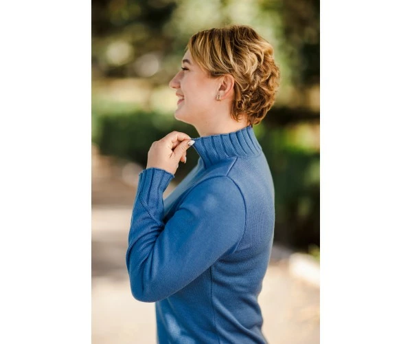 Очень теплое однотонное платье, выполненное из полушерсти. Ворот-стойка в нестандартном виде придаст уникальности данной модели, а также разная вязка на основной части платья, на рукавах и по бокам.