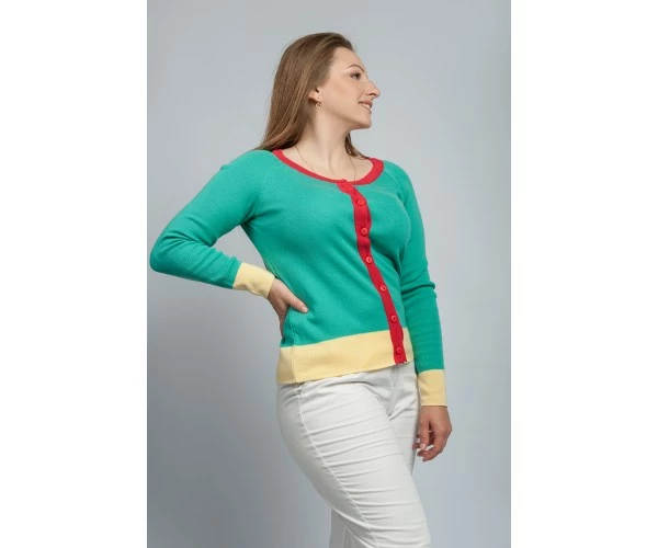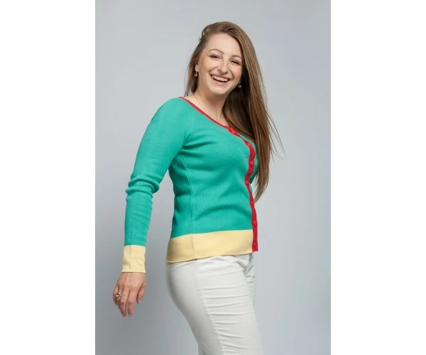 Яркий весенний жакетик для романтичных, модных прелестниц. Модель Л 562 разработана французскими дизайнерами, и представленная в яркой трендовой расцветке. Бирюзовый жакет с контрастной отделкой на пуговках станет украшением женского гардероба. Идеальный вариант для завершения весеннего женского образа.