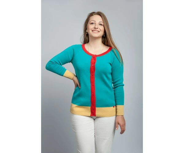 Яркий весенний жакетик для романтичных, модных прелестниц. Модель Л 562 разработана французскими дизайнерами, и представленная в яркой трендовой расцветке. Бирюзовый жакет с контрастной отделкой на пуговках станет украшением женского гардероба. Идеальный вариант для завершения весеннего женского образа.