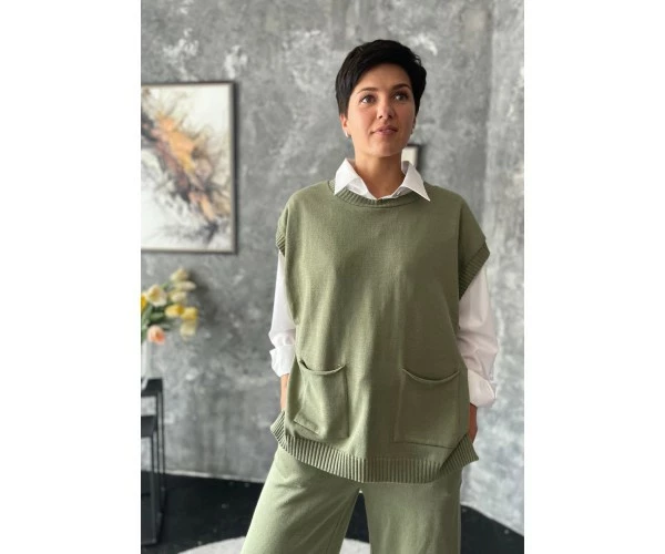 Стильный и практичный жилет, идеален для теплого и холодного времени года. Подойдет к юбке, брюкам, кюлотам и джинсам.